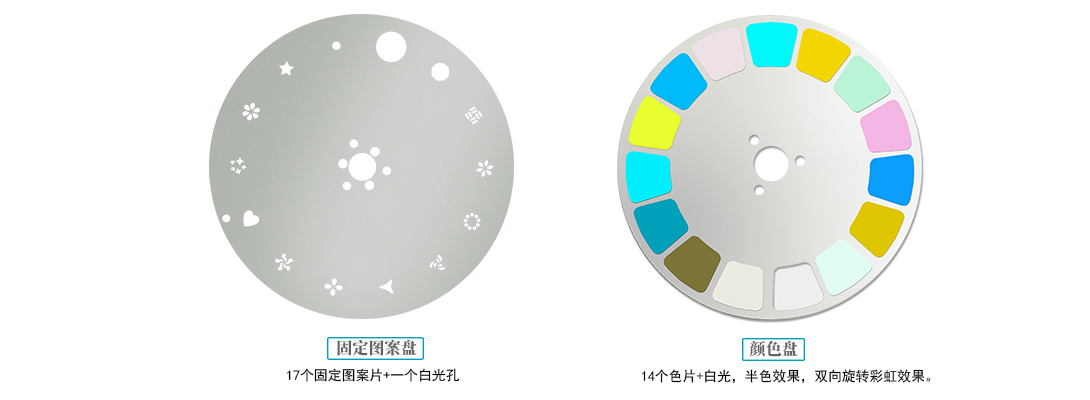 * Static Gobo: 13 static Gobos + Open; continuous scroll at variable speeds