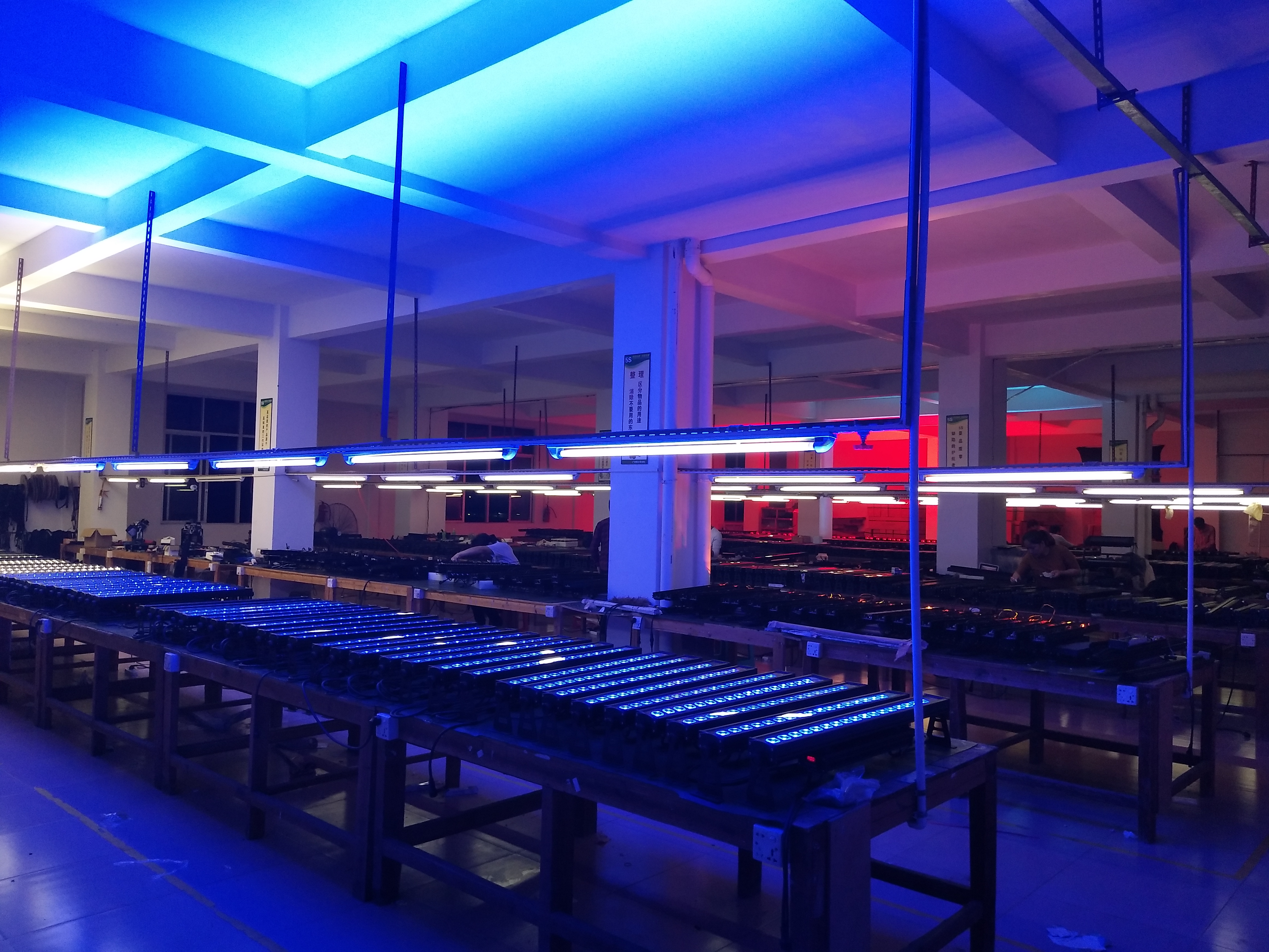 性能特點:18顆10W四合一大功率LED,50000小時燈珠壽命,低功率消耗,RGB無限混合(顏色速度變化速度快慢可調節),18顆燈珠可單獨控制,營造優越的燈光染色效果,18次/秒高速頻閃及脈沖頻閃效果,0-100%線性調光,顏色走燈效果,內置自走程序,調用簡單,DMX512控制協議。