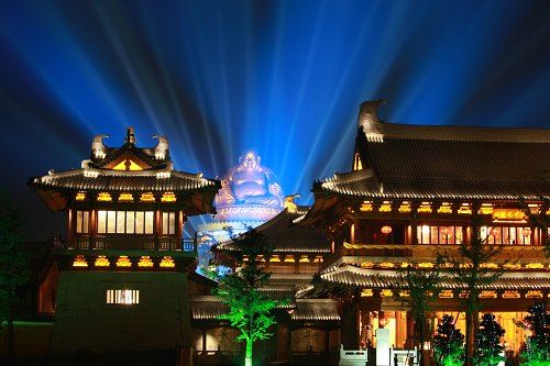 景區規劃面積52公頃,由中、東、西三條軸線和六大功能區組成。中軸線為大佛主景區,東軸線為大佛副景區,西軸線為原雪竇寺建筑。六大區功能布局動靜結合分別是:大佛核心區、禮佛朝拜區、彌勒群雕區、文物展示區、休閑修身區、旅游購物區。露天彌勒大佛造像總高度為56.74米(其中銅制佛身33米,蓮花座9米,基座14.74米),整座大佛用500多噸錫青銅制造,內部有1000余噸鋼架支撐,與整個巖體連成一體,穩固堅實,宏偉壯觀,氣勢非凡。是全球最高的坐姿銅制彌勒大佛造像。
