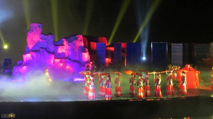《夢·巴馬》是廣西繼桂林“印象劉三姐”之后的又一臺大型山水實景的水上舞臺表演,通過真山、真水、真景演繹真實的巴馬人家生活,參與演出的200多名演員在夢幻般的的實景中再現巴馬民俗風情。
